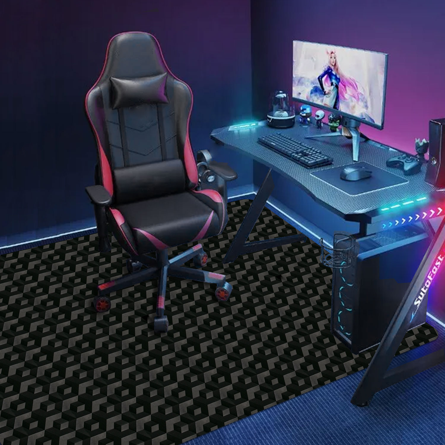 * 【Noise Reduction & Large Size】The floor protector can be used as a floor buffer to reduce the noise of the caster rolling. You will not disturb others when you are working or playing games at midnight. The large size of the mat can cover the farthest points of your workstation so that it can protect the entire floor.