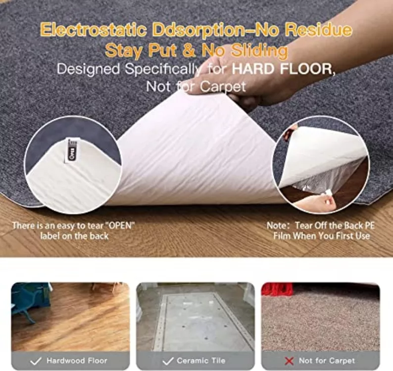 5. The PE film on the back is self-adhesive and does not damage the floor. The product is suitable for hardwood floors and can maintain its original position when moving