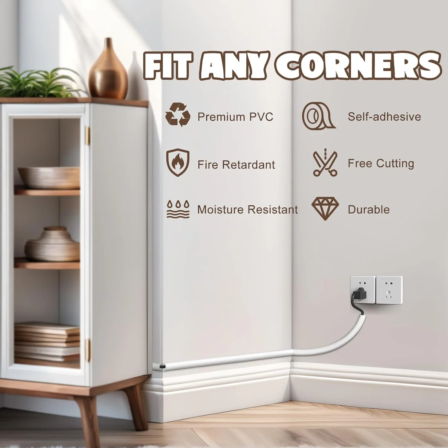 Our cord covers have self-adhesive backing for easy peeling and pasting, which not only does not require tools for installation, but also maximizes the protection of the wall.