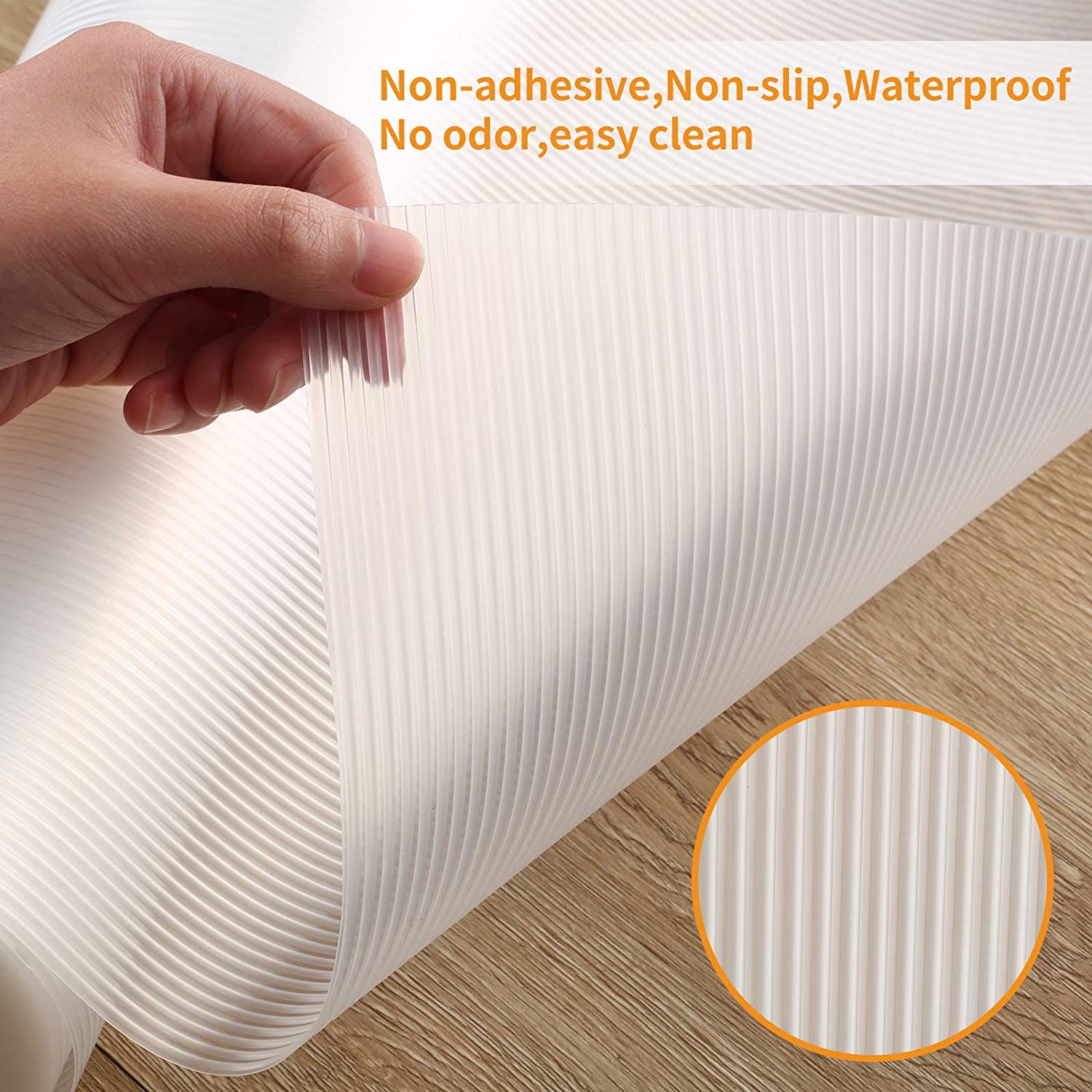 * BPA Free And Safe Material: The EVA Ribbed Liner is made of soft and durable EVA material. The cupboard liner can directly contact food and keep food and fruits fresh.
