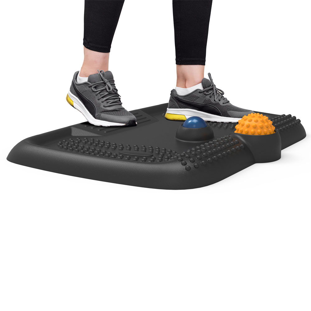 | Feature | You can keep our mat under your desk to easily transition from sitting to standing. The non-slip mat has anti-skid surface, so you don’t have to worry about slipping. Our mat also offers the perfect amount of space to promote continual active foot movement, and is the perfect choice for nearly any workspace, such as your home, office, classroom, kitchen, and more! |