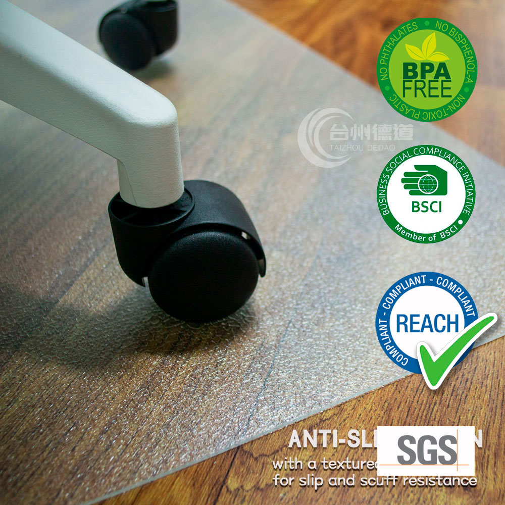 Taizhou Dedao Industry focuses on producing PVC chair mats, PET chair mats, PC chair mats and anti fatigue mats. of industry and management experience in the mat field, we always producing various mat products, keeping up with market changes, and actively meeting customer needs.