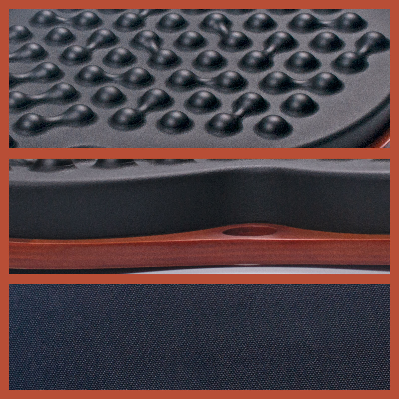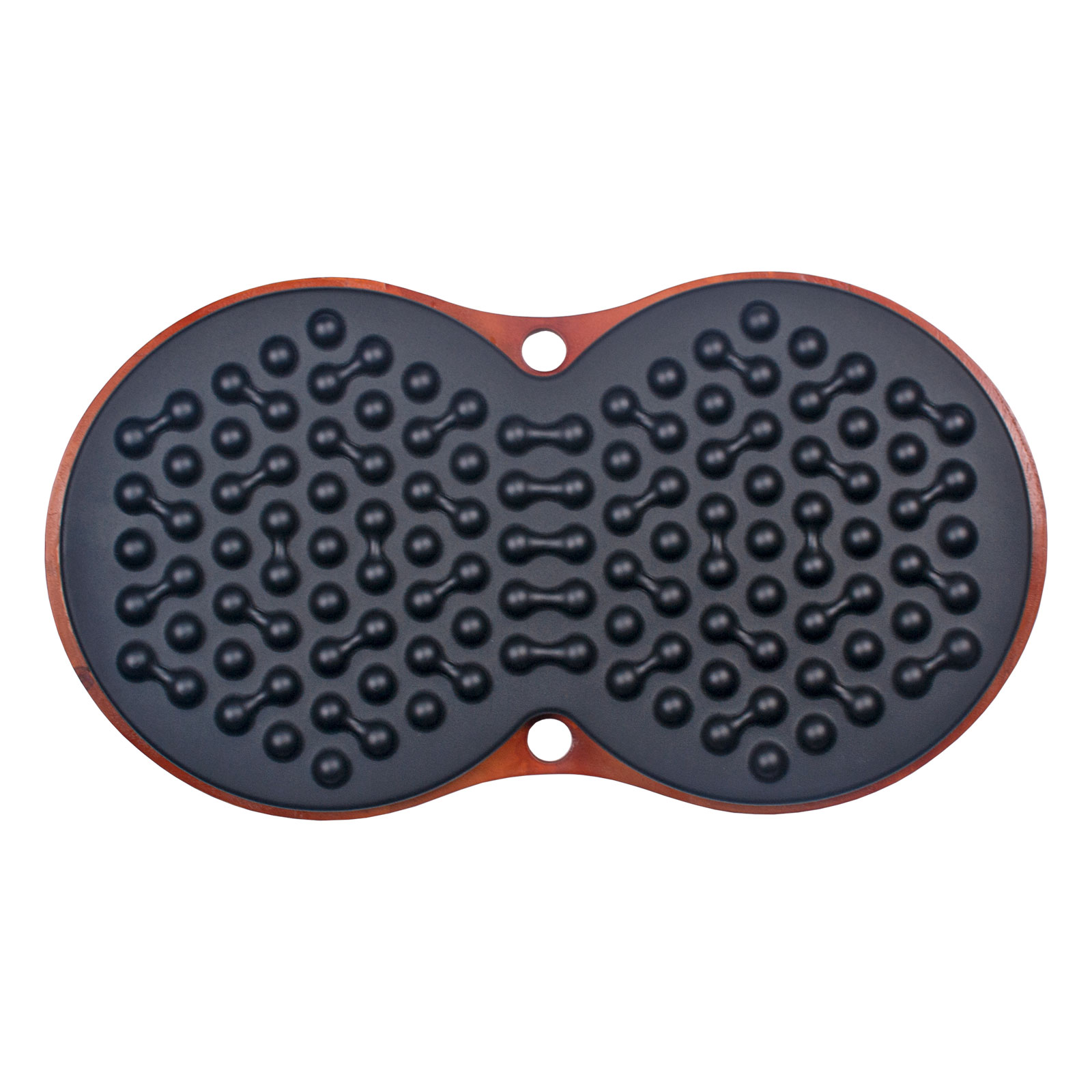 The standing desk mat is made from a soft memory foam material with added raised bumps to massage the foot area for blood circulation and muscle engagement. It also provides texture to the mat for a more comfortable feeling.