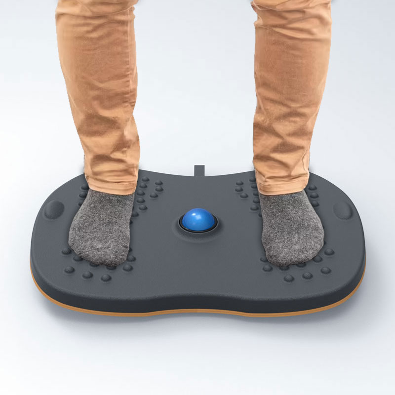 engages stabilizing muscles in the back, core, legs and ankles while working, studying or exercising