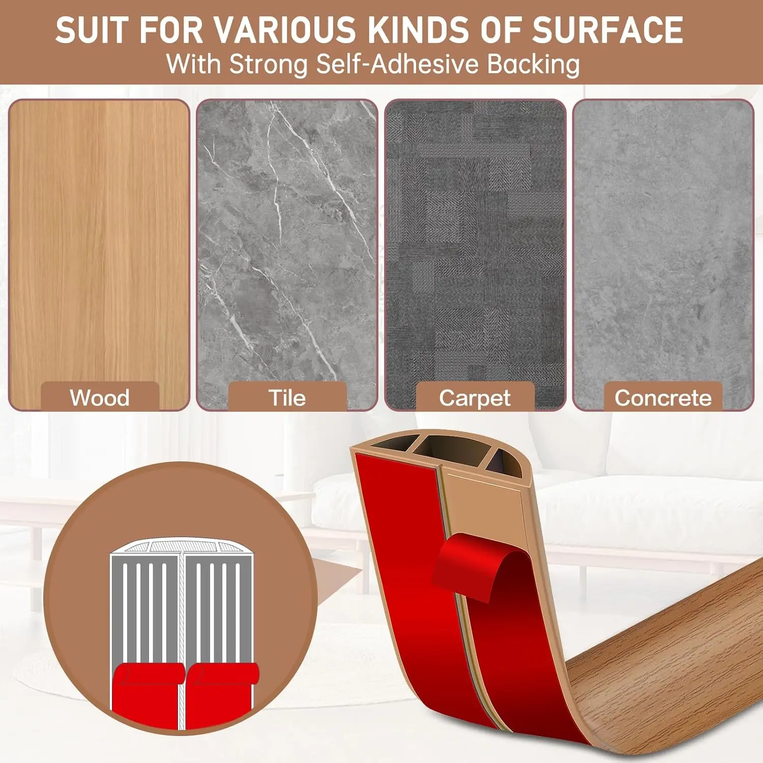 3. Suitable for application over hardwood, tile, or carpet.